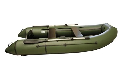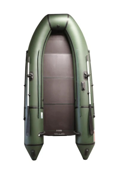 Надувная лодка с плоским дном укомплектована полом - книжкой. Плавные обводы лодки с приподнятым носом обеспечивают наибольшие скоростные характеристики. Концевики баллонов имеют скошенные конуса, которые обеспечивают вспомогательную подъемную силу.